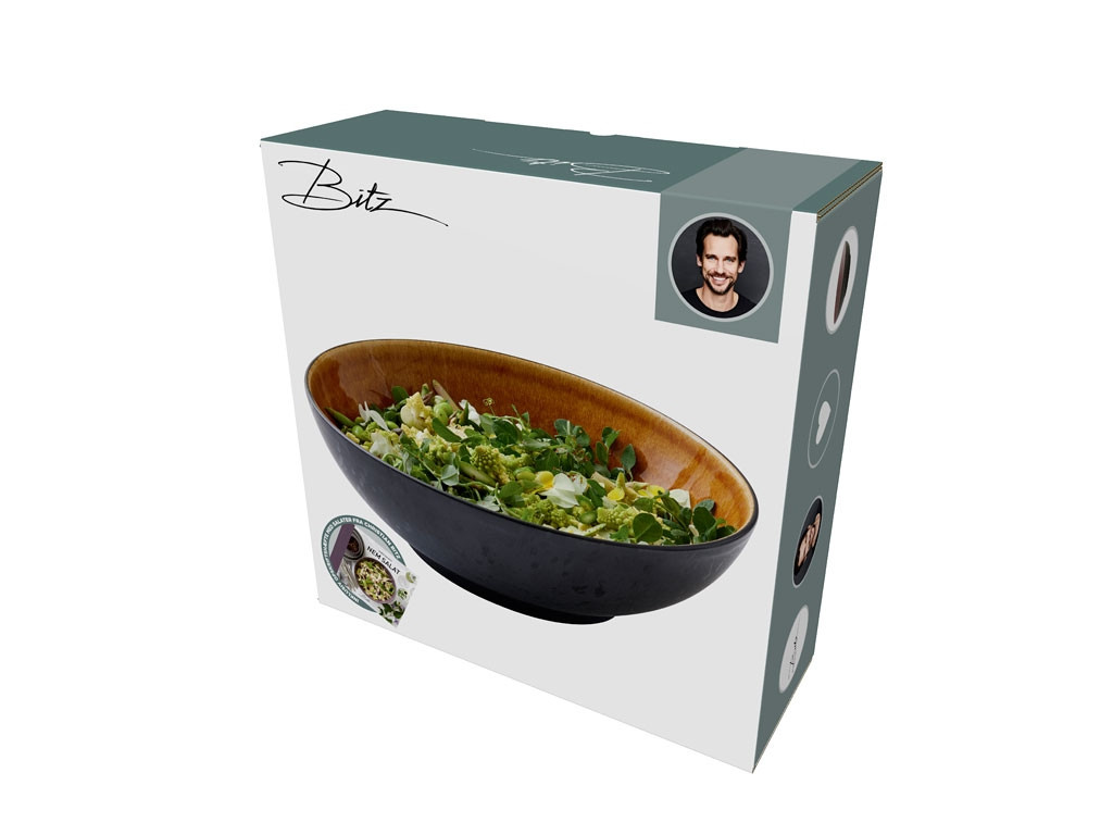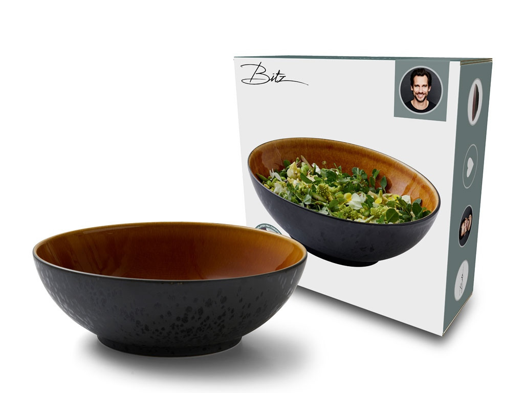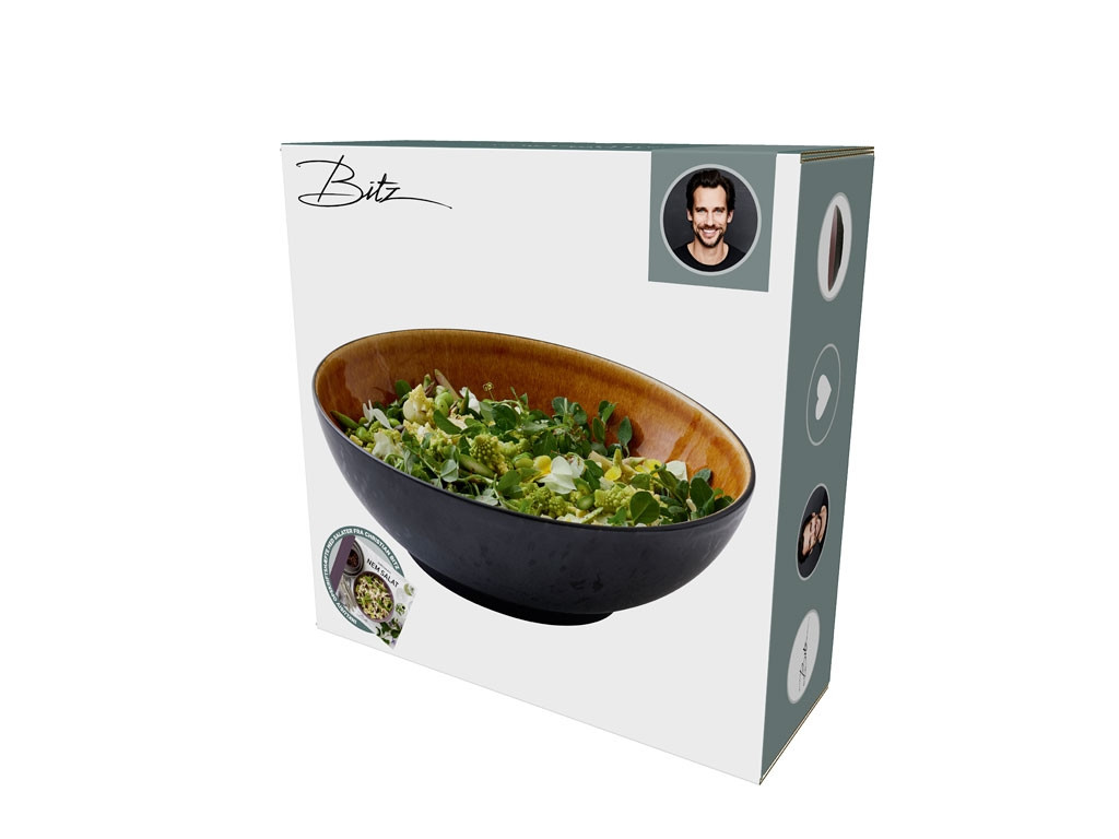 BITZ velká miska na salát z černé kameniny s lesklou glazurou na vnitřní straně, kombinovanou s potravinovou reaktivní glazurou na vnější straně. Mísa je ideální pro velké saláty a pokrmy. Vhodné pro myčku, mikrovlnku a troubu do 220 stupňů.