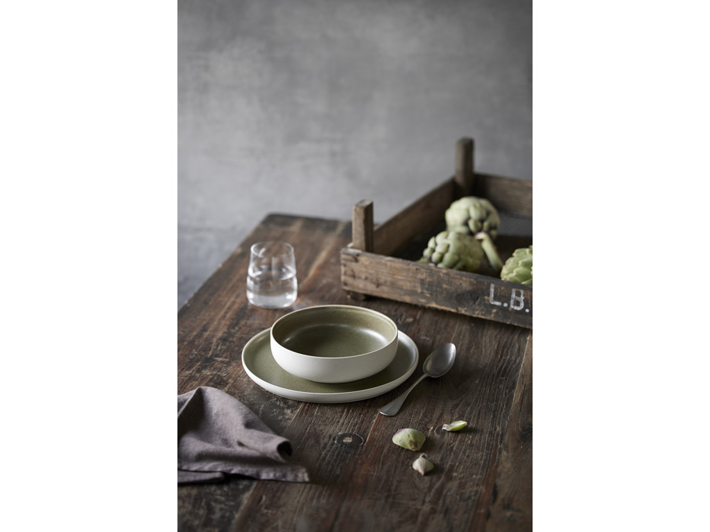 Kameninový mělký talíř North 27 cm White/Matte Moss