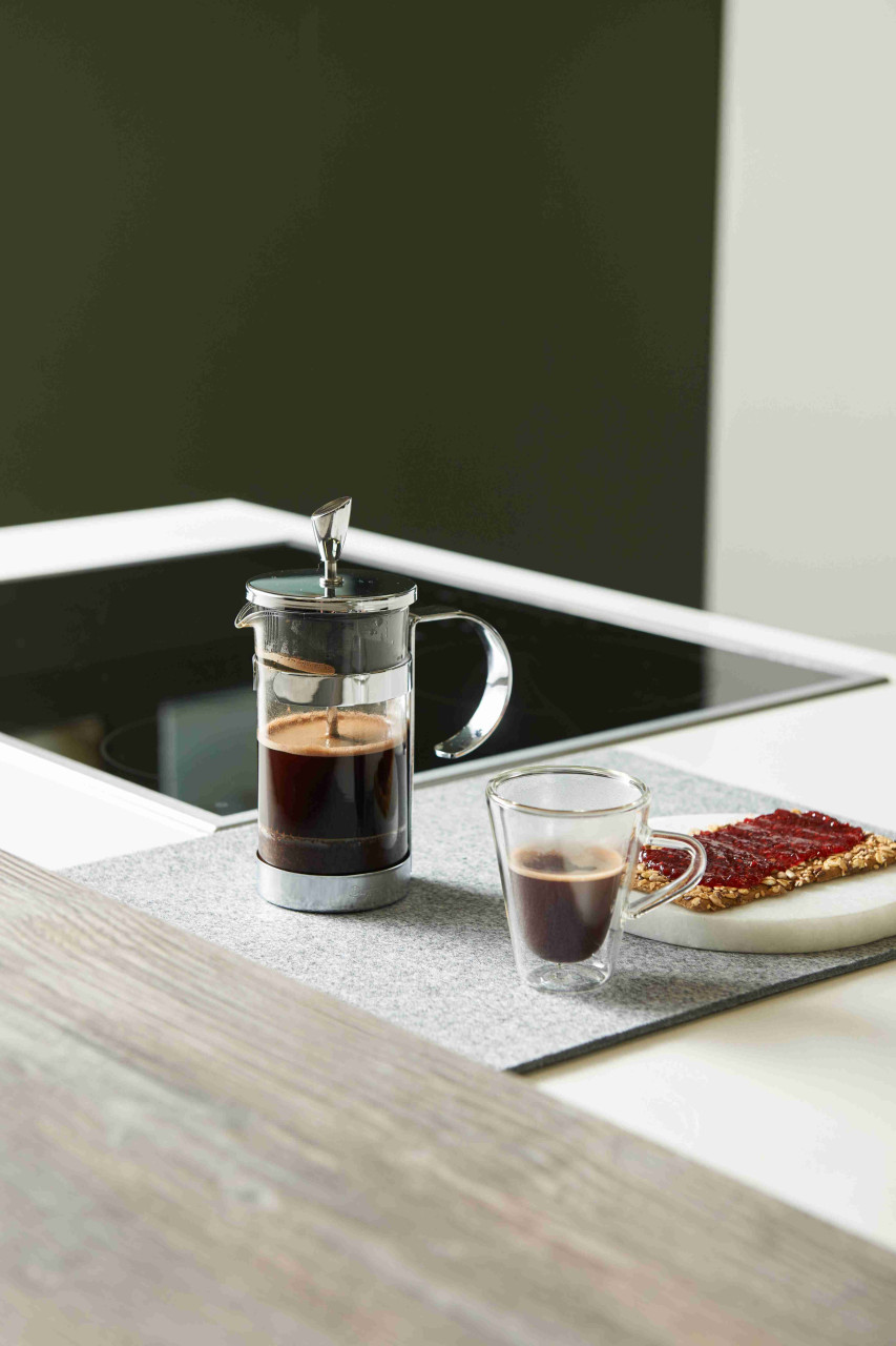 Jak připravit kávu ?1. French press postavte na rovnou nekluzkou plochu. Konvičku předehřejte vroucí vodou. 2. Užijte čerstvě mletou kávu se střední hrubostí. 3. Do předehřáté konvičky s vyjmutým sítkem nasypte kávu. 4. Přiveďte vodu k varu a nechte nejméně 40 vteřin odstát. 5. Polovinu vody nalijte do french pressu a po dobu 20 vteřin nechte kávu vykvést (káva vytvoří na hladině krustu). Následně dolijte zbytek vody. Po 1 minutě louhování můžete kávu zamíchat, před nasazením filtru můžete lžící odstranit krustu. 6. Kávu louhujte max. 4 minuty. Víčko s filtrem nasaďte na konvičku a sítko pomalu stlačte. Pro stlačení neužívejte zbytečně velkou sílu. 7. Ihned po stlačení kávu přelijte do připravených nahřátých hrníčků nebo do konvice/termosky.